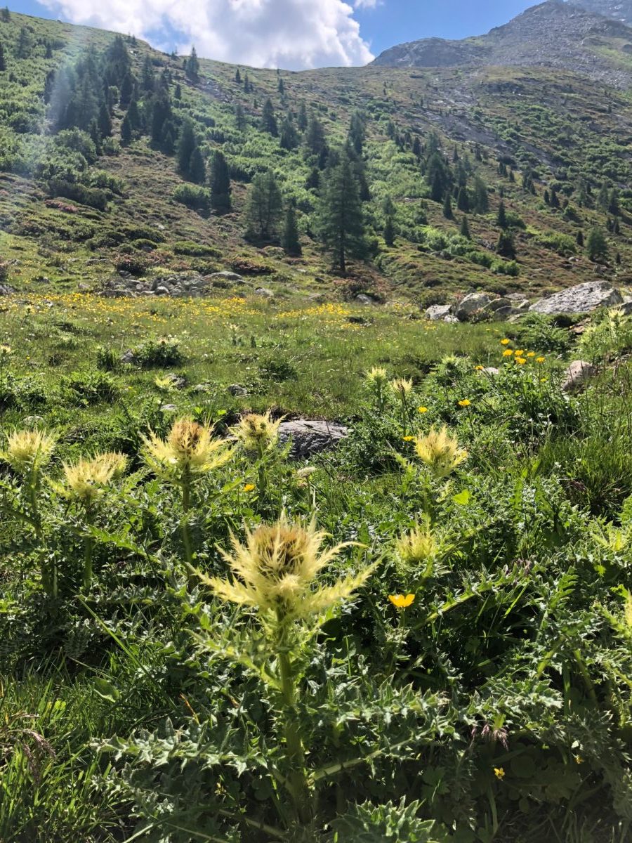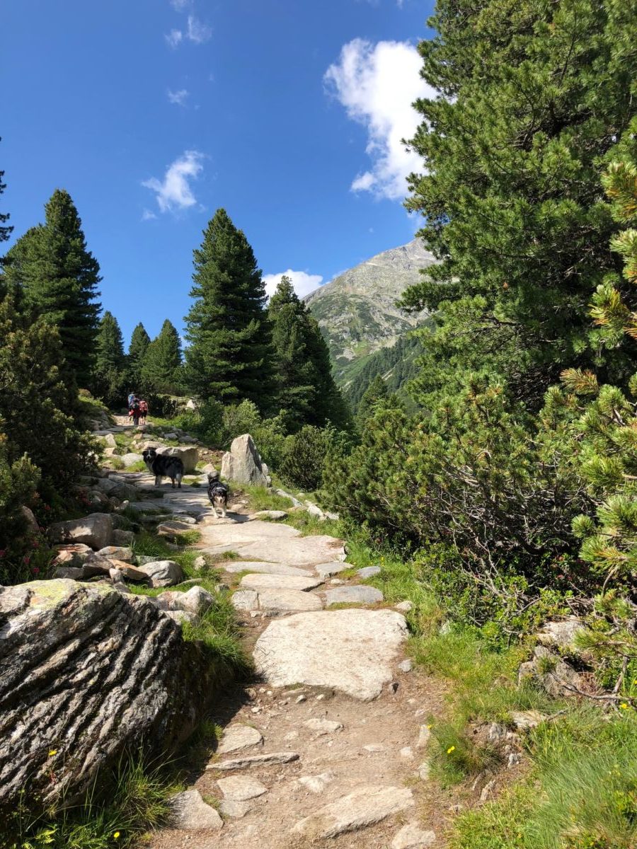 Der teils mit Steinplatten ausgelegte Weg rief in Erinnerung das bereits 9.000 Jahre vor Christi dieser Alpenübergang benutzt worden ist. Wer da wohl alles schon rübergegangen ist.