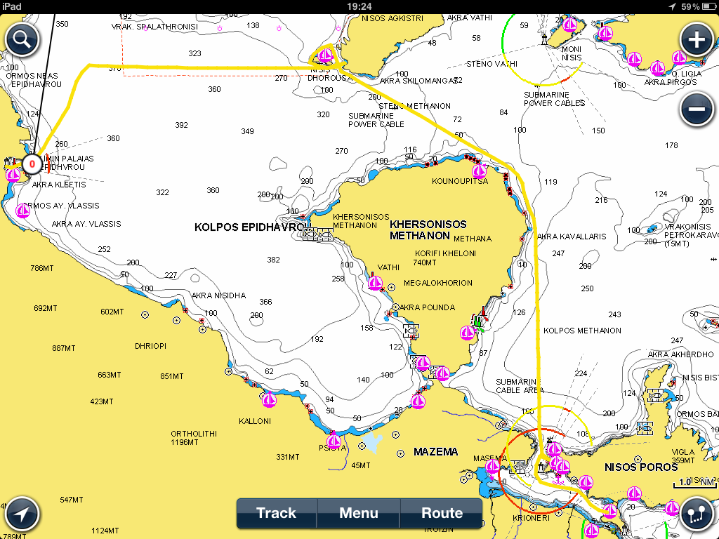 Eineinhalb Stunden später machten wir uns auf den Weg nach Palais Epidauros. Leider mangels Wind wieder unter Motor.