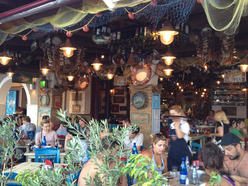 Die Hafenpromenade machte auf uns den Eindruck einer drittklassigen Tourimeile, die ihre besten Jahre hinter sich hat. Es reihten sich Café an Pita-Bude, an Schwimmutensilien-Markt und das eine oder andere nicht gerade sehr einladende Restaurant.